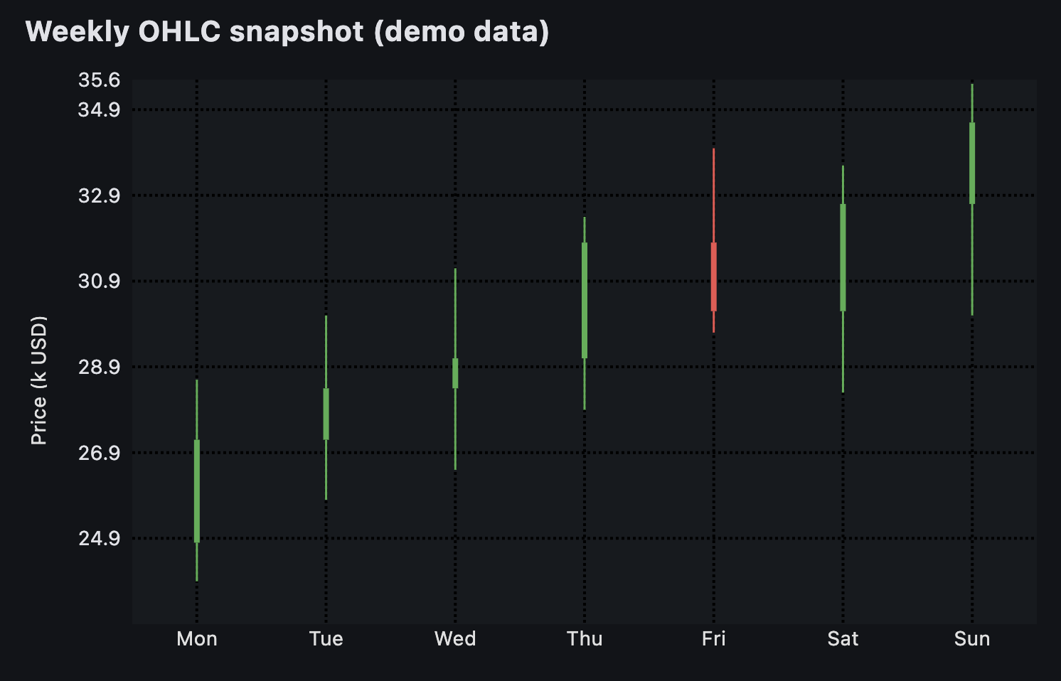 "Weekly OHLC snapshot (demo data)",