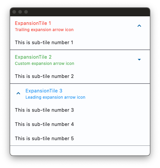 ft.ListTile(title=ft.Text("This is sub-tile number 3")),